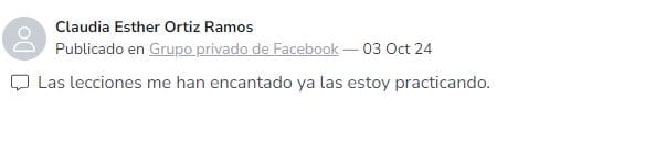 Tendrás acceso a un grupo privado de Facebook donde podrás hacer preguntas, compartir tus progresos y recibir apoyo tanto de instructores como de otros estudiantes.